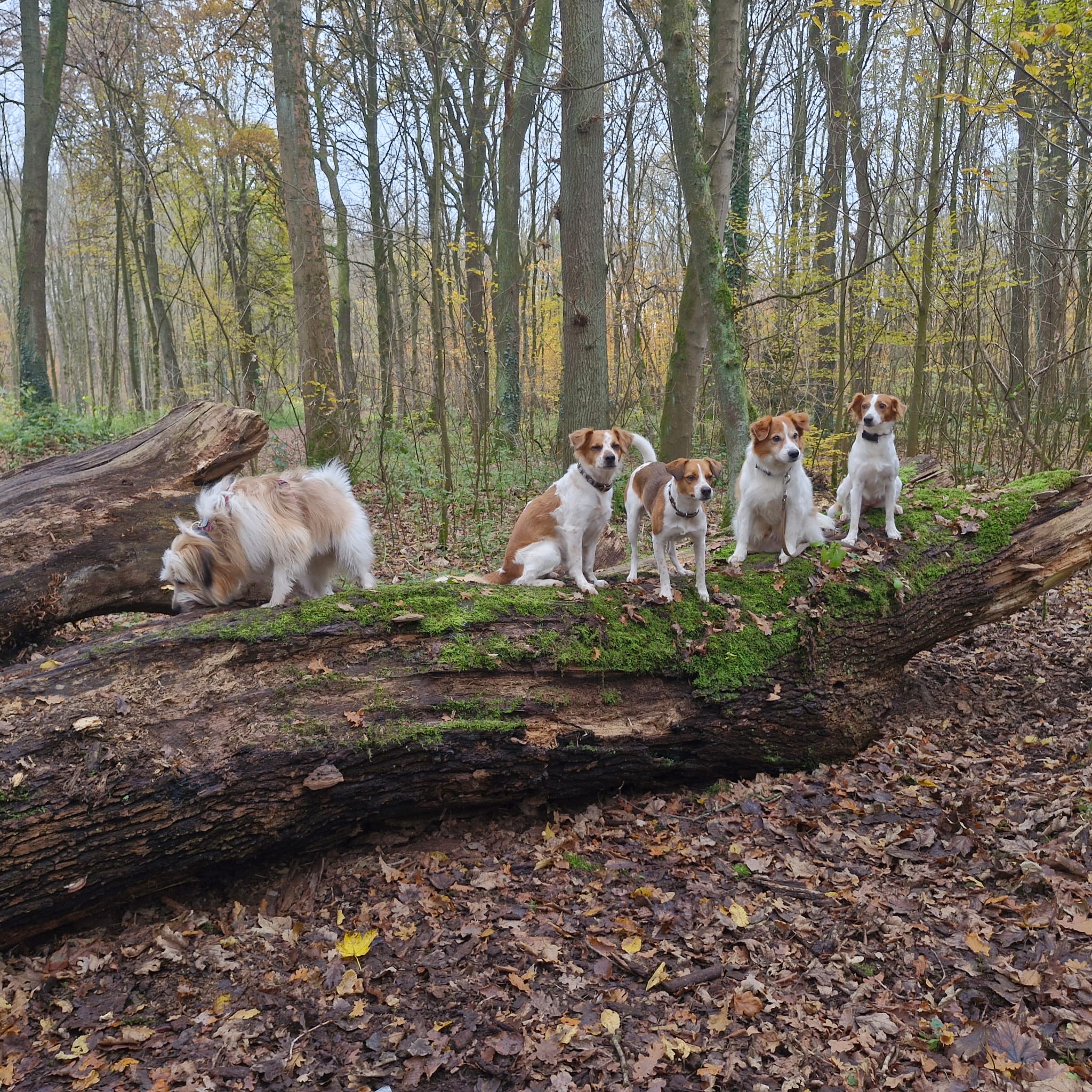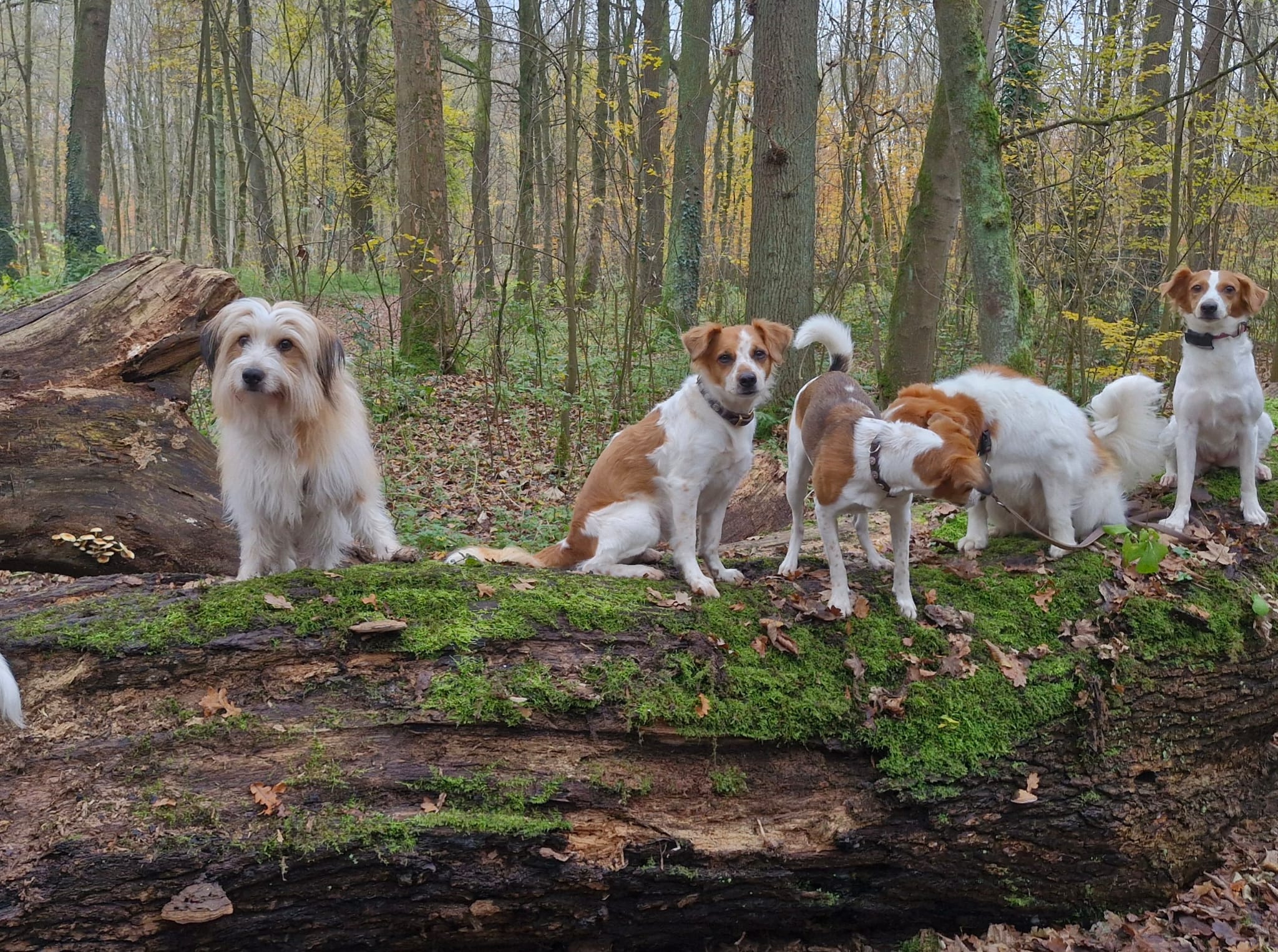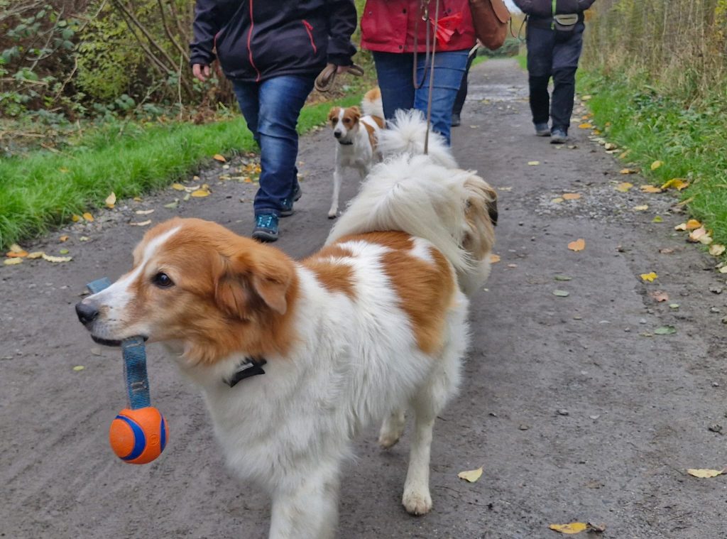 Die Hunde schnüffelten entspannt im Laub und es war eine rundum harmonische Runde. Auch Bosco und Barky liefen geduldig und entspannt zusammen – ein wunderbares Training für die beiden Rüden.