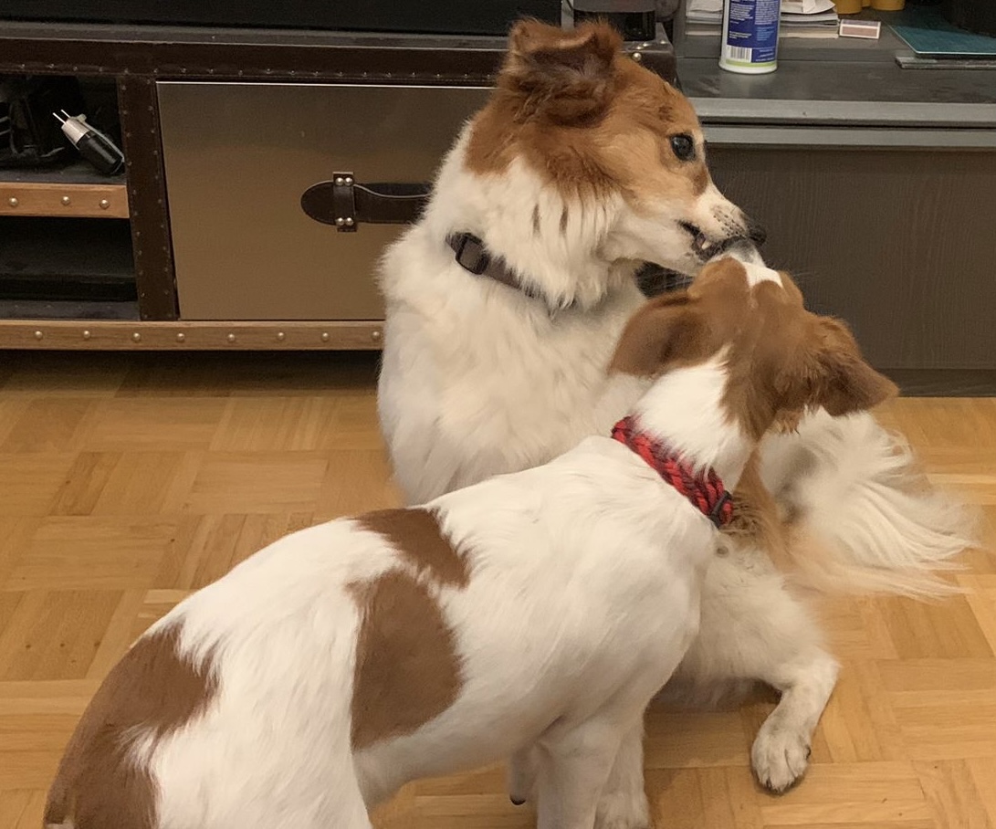 Die Hunde hatten auf dem Spaziergang durch Bach und Felder sehr viel Freude und es war ein fröhliches, teils stürmisches Wiedersehen. Aufgrund ihrer etwas aufdringlichen Art maßregelte Barky Ahsoka sanft aber dennoch deutlich. Dabei liebt sie ihren Onkel Barky so sehr und suchte immer wieder seine Nähe.