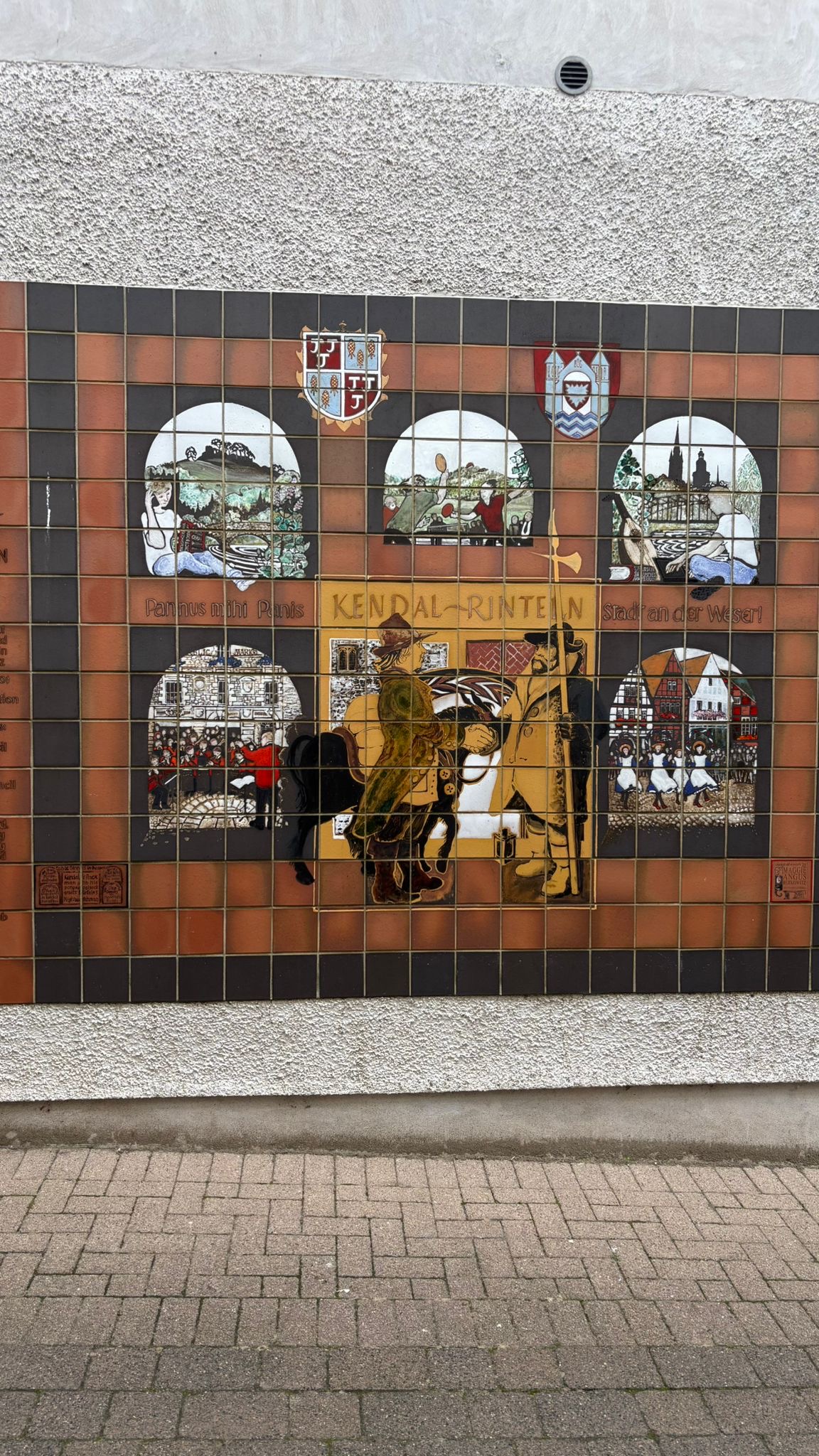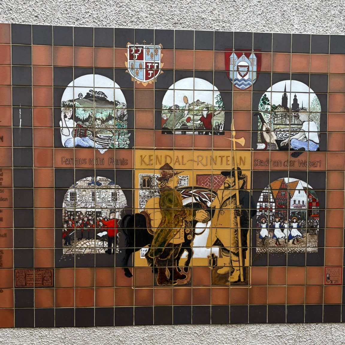 Nach einem Gassigang mit nettem Gespräch mit zwei Briten (das natürlich wieder über Kontaktaufnahme zu unseren Hunden zustande kam), fuhren wir noch nach Kendal hinein und bummelten etwas durch die sehr hübsche Stadt – übrigens Partnerstadt von Rinteln, wie wir an einem Wandbild ablesen konnten.