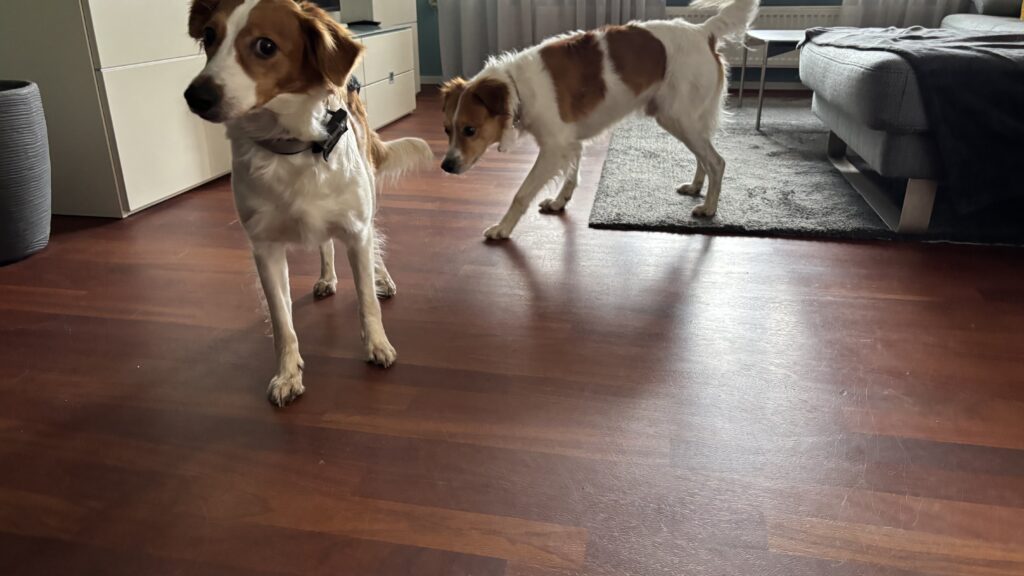Während Doria sich vom Deckakt ausruhte, tranken wir einen Kaffee und füllten die Deckmeldung aus. Dayko musste solange hinter seinem Türgitter warten, er war neugierig, welch gut duftende Dame da in seinem Haus entspannte und wäre sonst immer wieder motiviert zu ihr gelaufen.