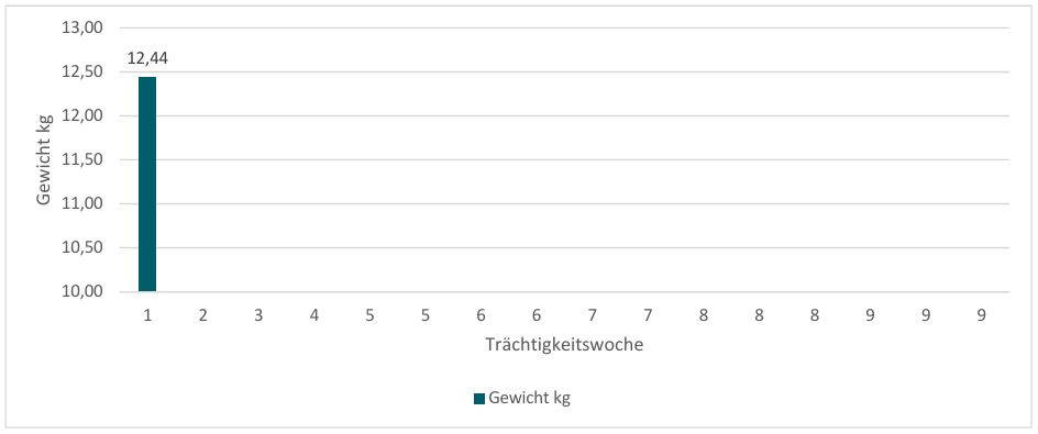 Der Deckakt hat am 30./31. Januar 2026 stattgefunden. Wir kontrollieren seitdem Dorias Gewicht und Körpermaße einmal, ab der 5. Trächtigkeitswoche zweimal und ab der 8. Trächtigkeitswoche dreimal pro Woche.