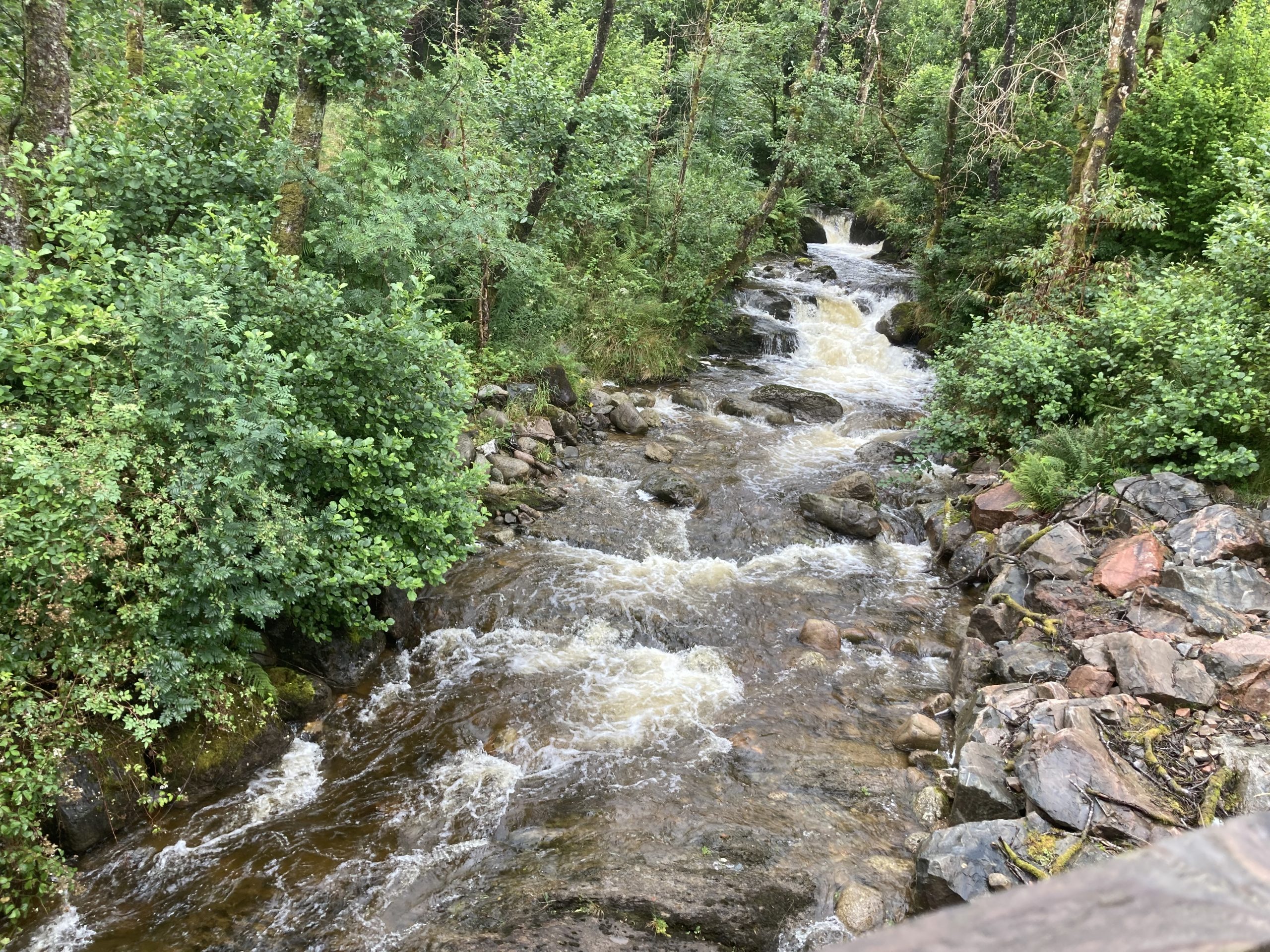 Der letzte Schlenker, der uns fast bis hinunter ins Glen Etive führte, war für uns sehr herausfordernd. Es ging von über 500 Höhenmetern durch einen Farn-Dschungel bis auf 140 Höhenmeter steil hinunter und nach einer super matschigen Passage auf über 500 genauso steil wieder rauf. Barky und Doria verstanden gar nicht, warum wir für den Aufstieg so lange brauchten.