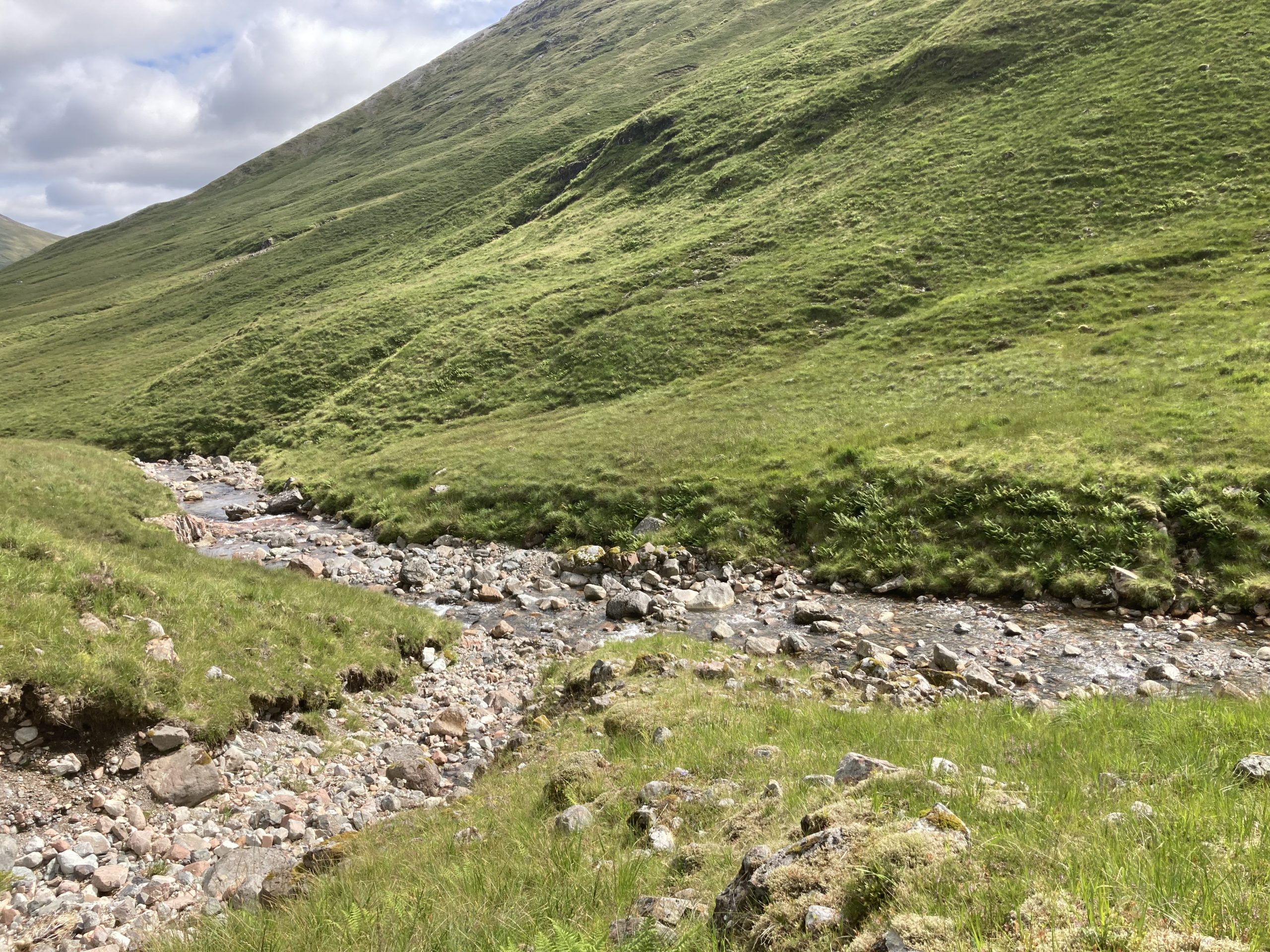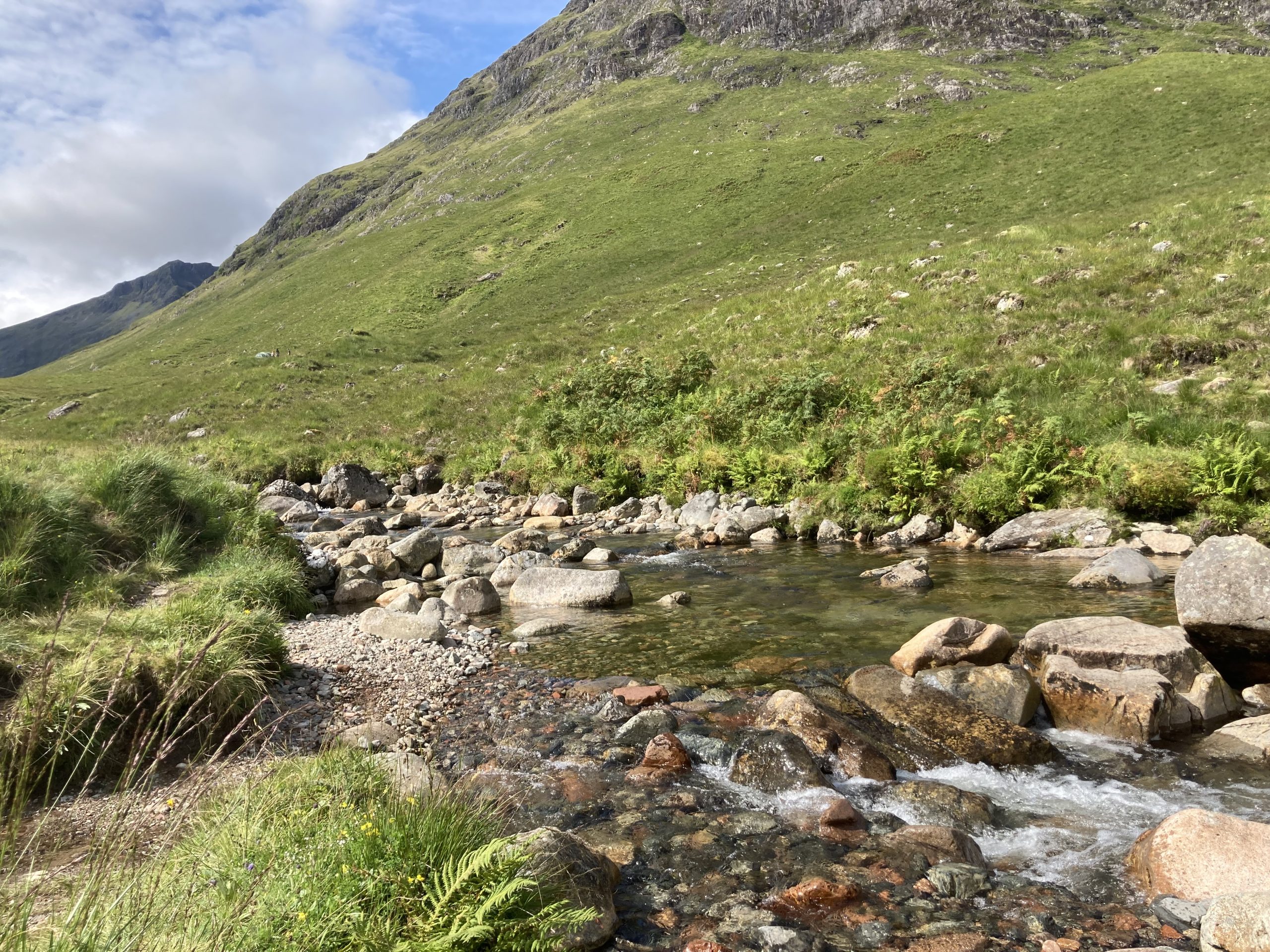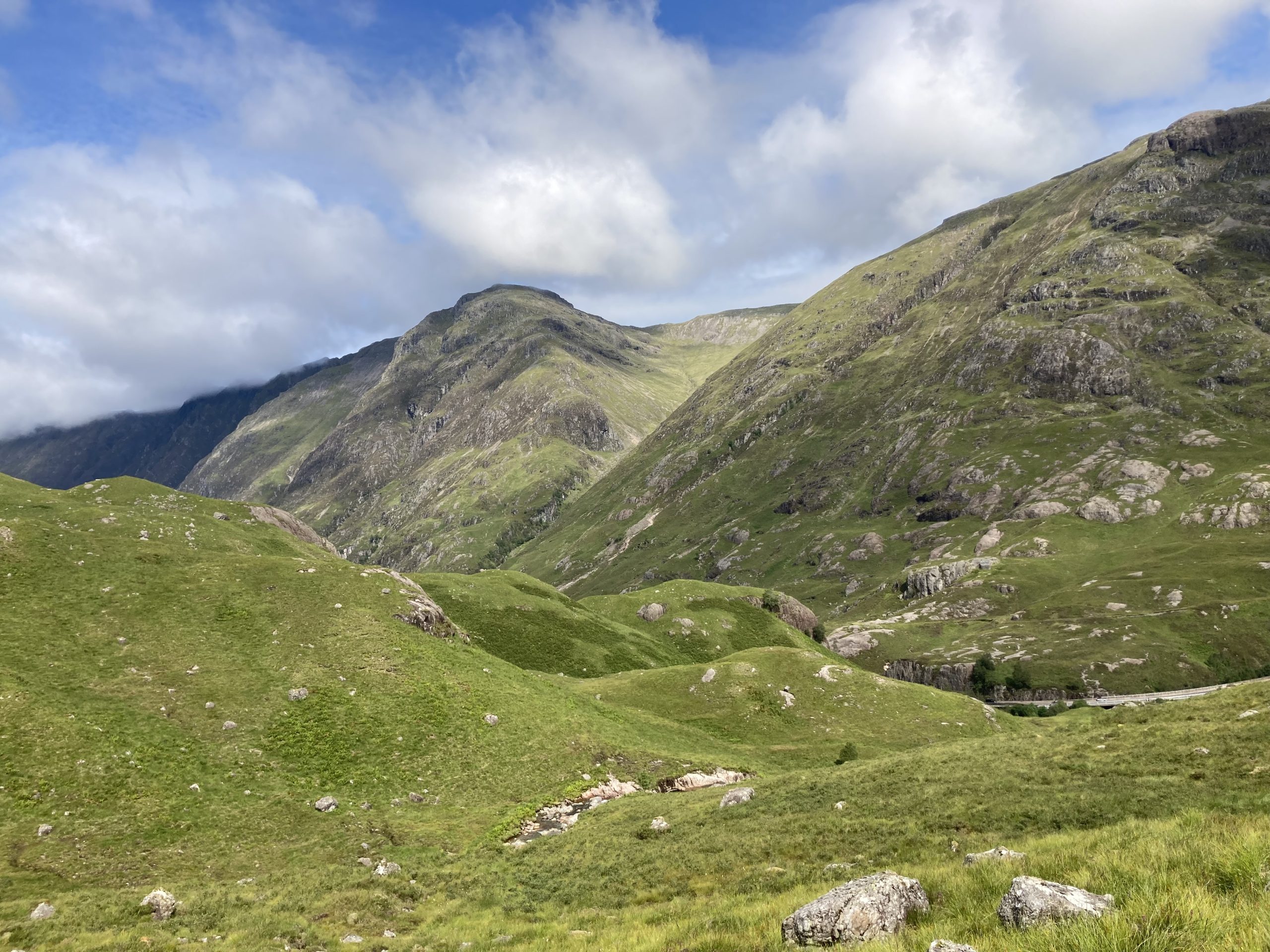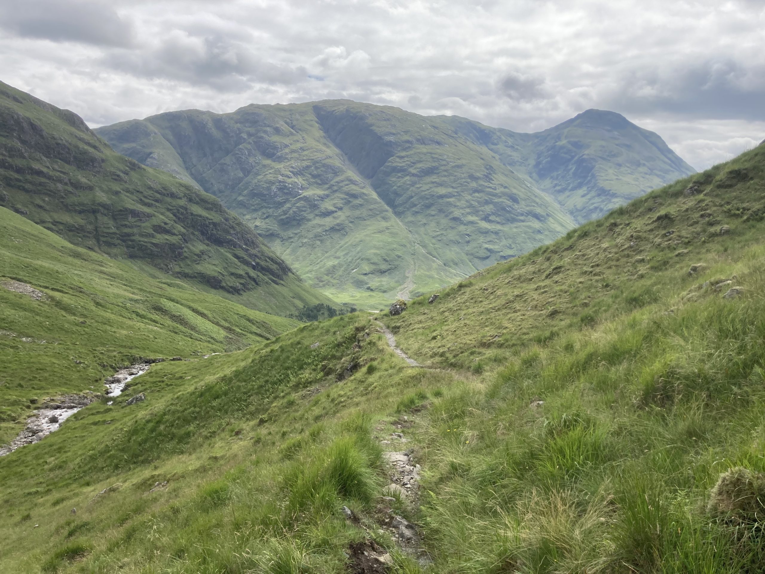 Also fix für die Wanderung entschieden, die wir in dieser Gegend unbedingt erleben wollten: The Two Lairigs. Sie führt zwischen Glen Coe and Glen Etive durch die beiden Gebirgspässe Eilde und Gartain. Diese Wanderung fing einfach an, der Weg war gut zu gehen und die sanfte Steigung merkten wir kaum.
