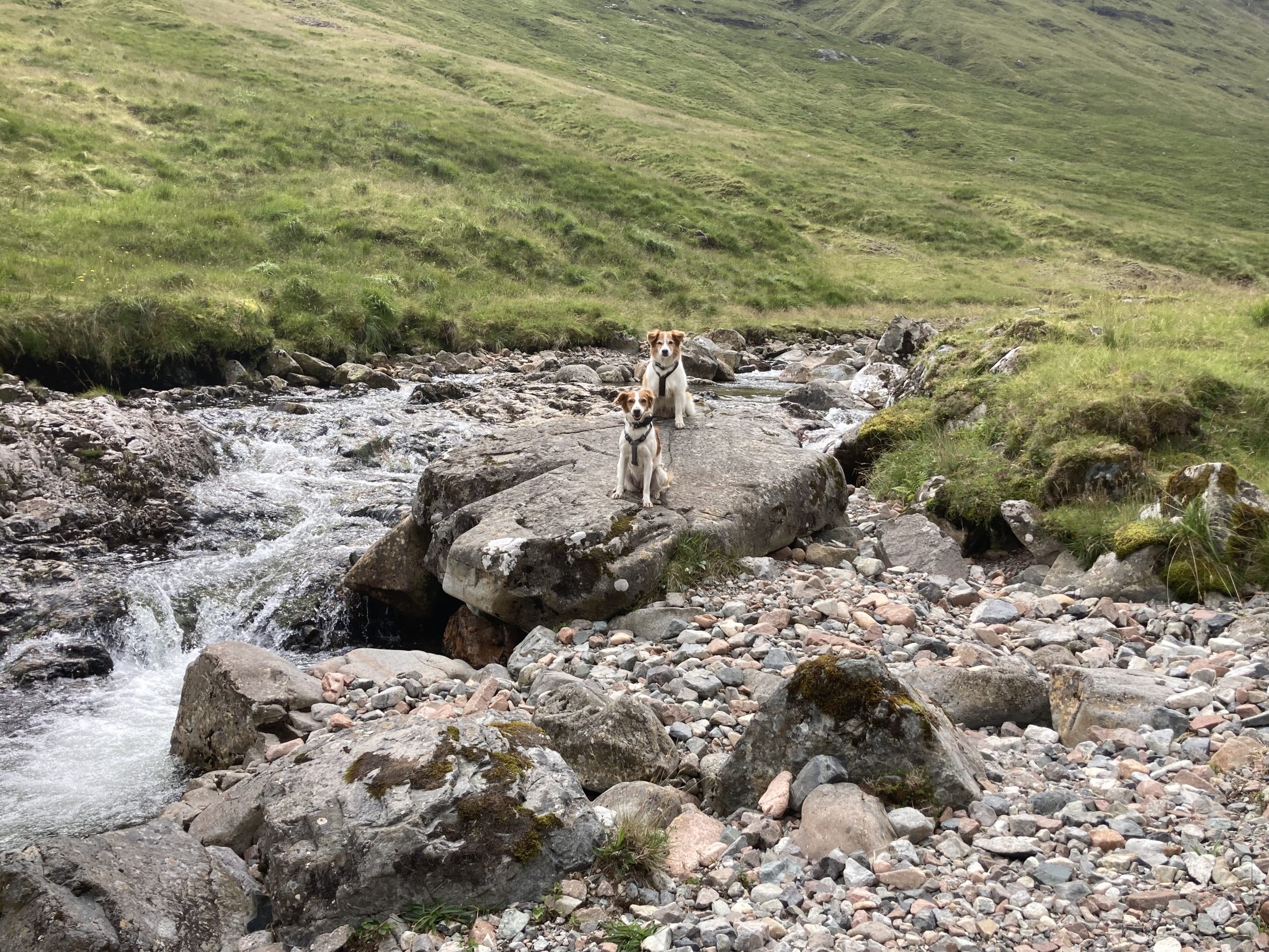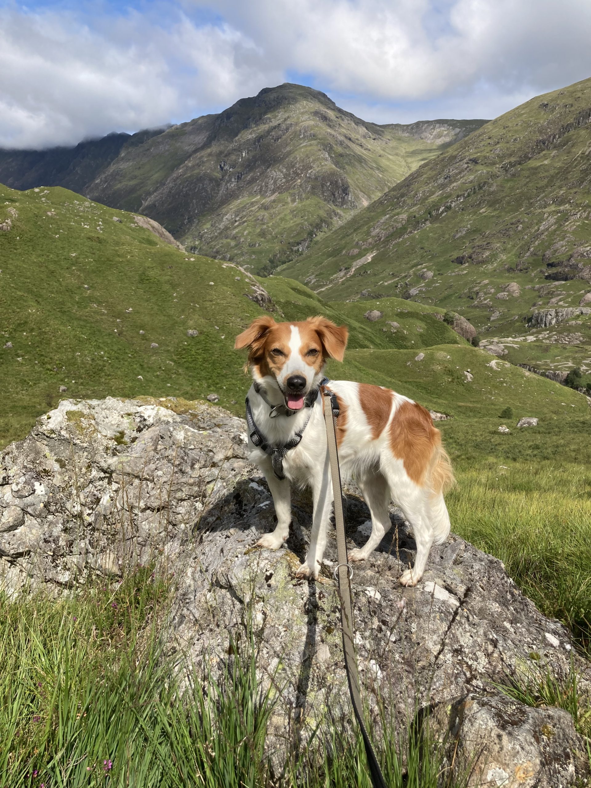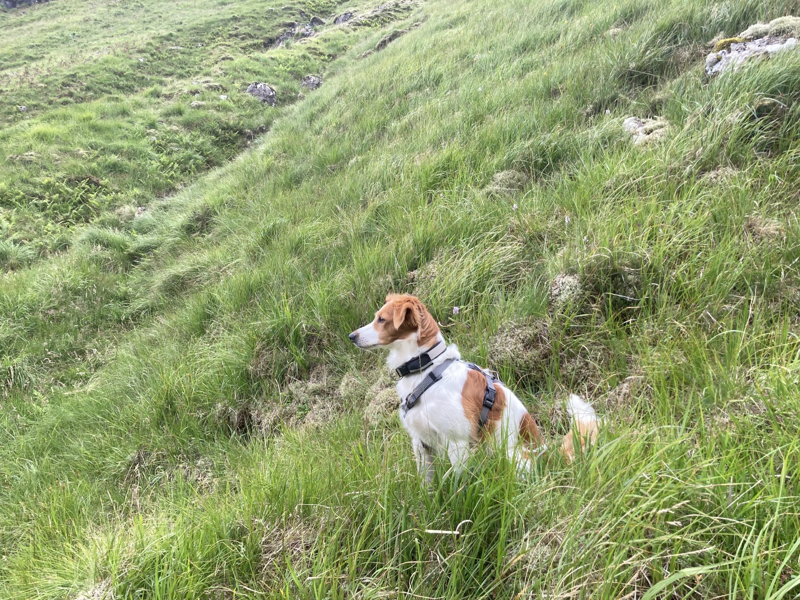 So haben wir uns Schottland vorgestellt – mitten durch die eindrucksvollen Highlands zu wandern und das Gefühl von Ehrfurcht und Ergriffenheit zu spüren und sich im schönen Sinn „klein“ zu fühlen. Barky und Doria haben diese sehr lange und Trittsicherheit fordernde Wanderung hervorragend gemeistert und Barky hatte am Ende noch so viel Energie, dass er nach Mäusen suchen wollte. Faszinierend, wie toll die Kromis als Wanderbegleiter geeignet und auch körperlich und geistig in der Lage dazu sind!